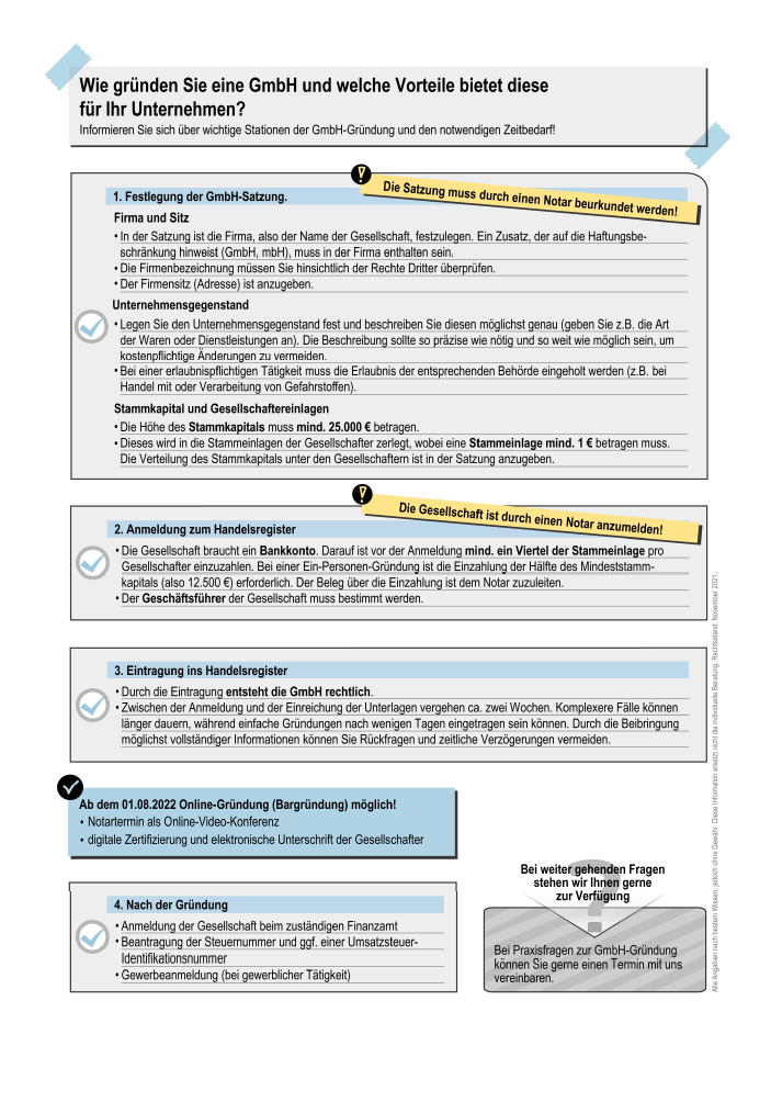 *Schätzungen für Bargründung mit 25.000 € Stammkapital