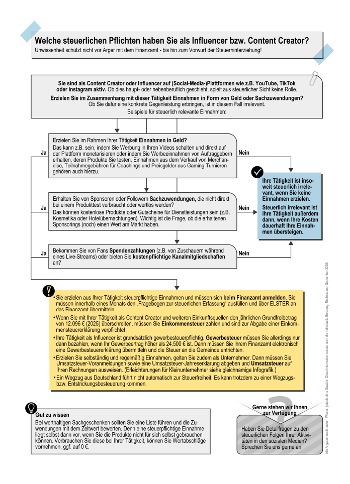 - Deine Rolle: Als Influencerin giltst du meist als **Gewerbetreibender**